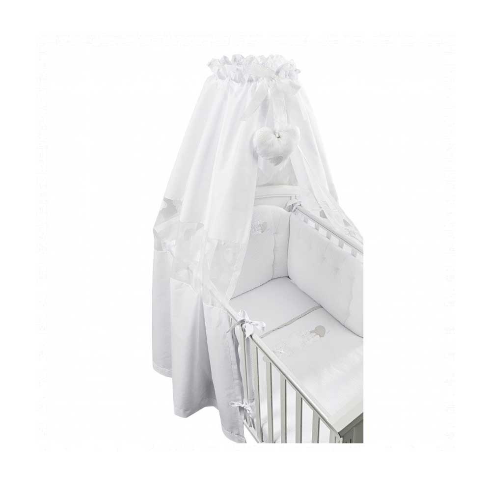 Балдахин в изголовье кроватки не только украсит спальное место Вашего малыша, но и защитит от яркого света, сквозняков и подарит приятные сны. Балдахин Nanny из мягкой ткани, декорированный шикарным бантом с подвеской в виде изящного объемного сердечка, сделает кроватку малыша ещё более уютным местом для сна.