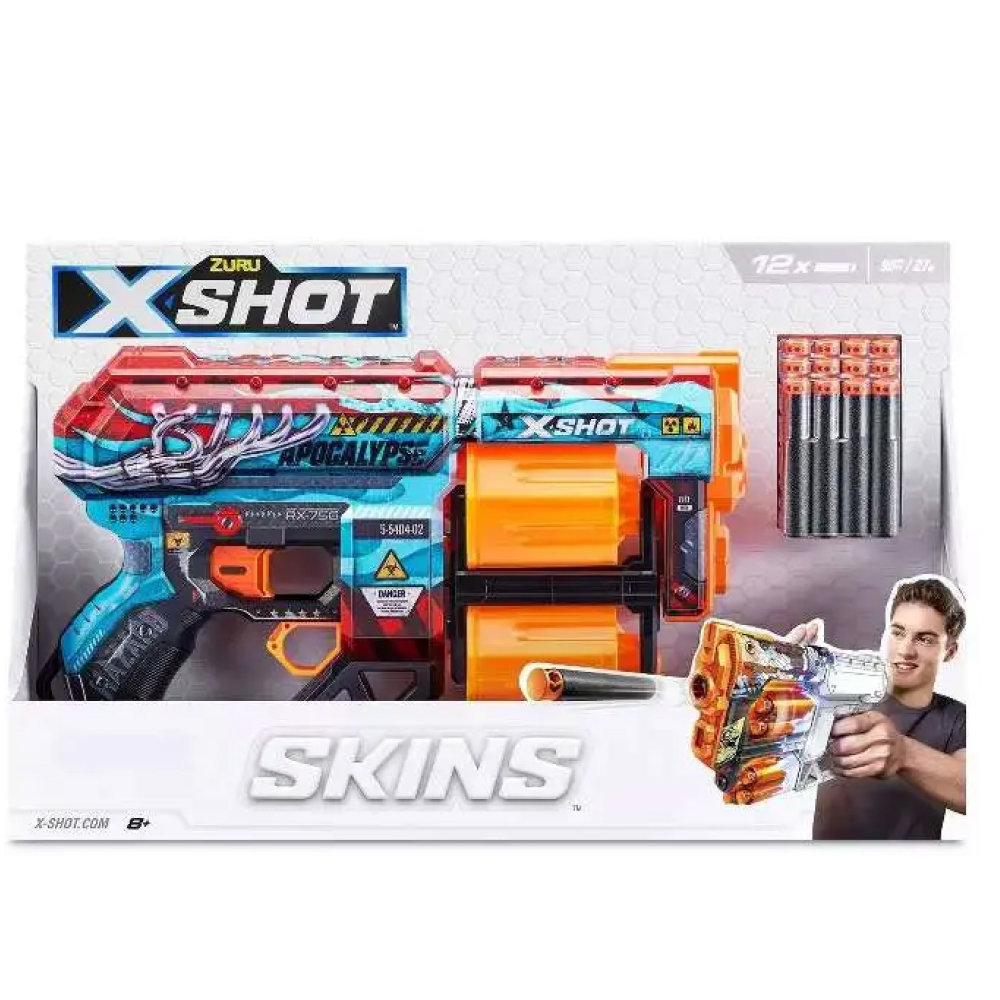 X-Shot Skins переносит игровой опыт создания скинов для вашего бластера в реальный мир, выбирайте свой скин и присоединяйтесь к битве. Приготовьтесь к хаосу с X-Shot Skins Dread Apocalypse. Благодаря вместимости 12 дротиков и вращающимся стволам Dreads с двойными проблемами вы заряжены и заряжены для удовольствия. Когда у вас закончатся дротики в одном стволе, переключитесь на второй и стреляйте в соперников с расстояния до 27 м / 90 футов. Дротики X-Shot Skins включают новую технологию воздушного кармана для более быстрого, дальнего и точного выстрела. Бластер X-Shot Skins Dread поставляется в 7 уникальных расцветках, которые можно выбирать и собирать, чтобы создать свой идеальный арсенал. Выбирайте разные, выбирайте скины X-Shot.