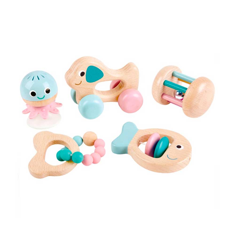Эта замечательная коллекция игрушек растет вместе с вашими малышами и помогает им развиваться на каждом этапе пути. Включает в себя погремушки и жевательные бусинки для прорезывания зубов для младенцев, погремушку-фиксатор, когда они станут достаточно большими для стола, и ползающих щенков и погремушки, когда они вырастут в малышей!