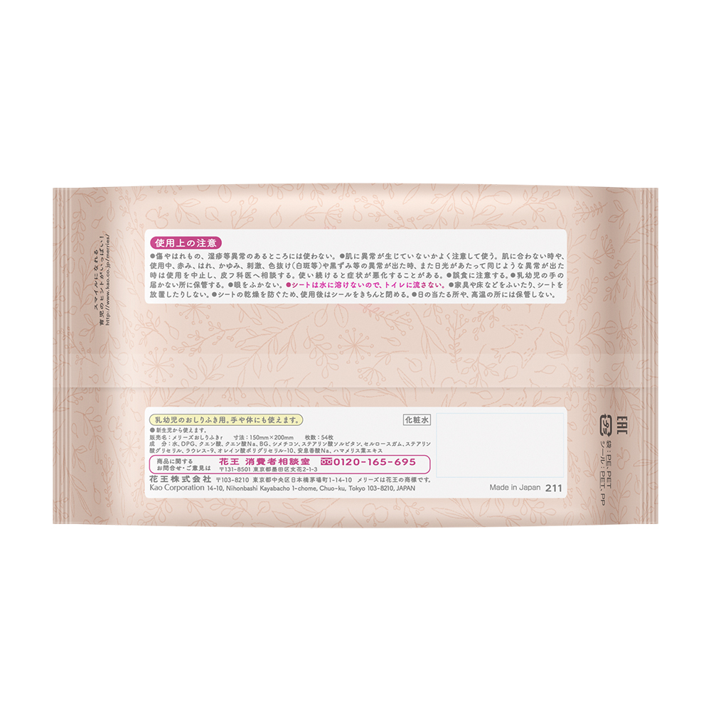 Салфетки Merries пропитаны лосьоном, который быстро проникает в загрязнения и легко удаляет их. Больше не придется протирать одно и то же место несколько раз, что позволит уберечь кожу малыша от раздражений. Чистая кожа малыша без усилий и забот!