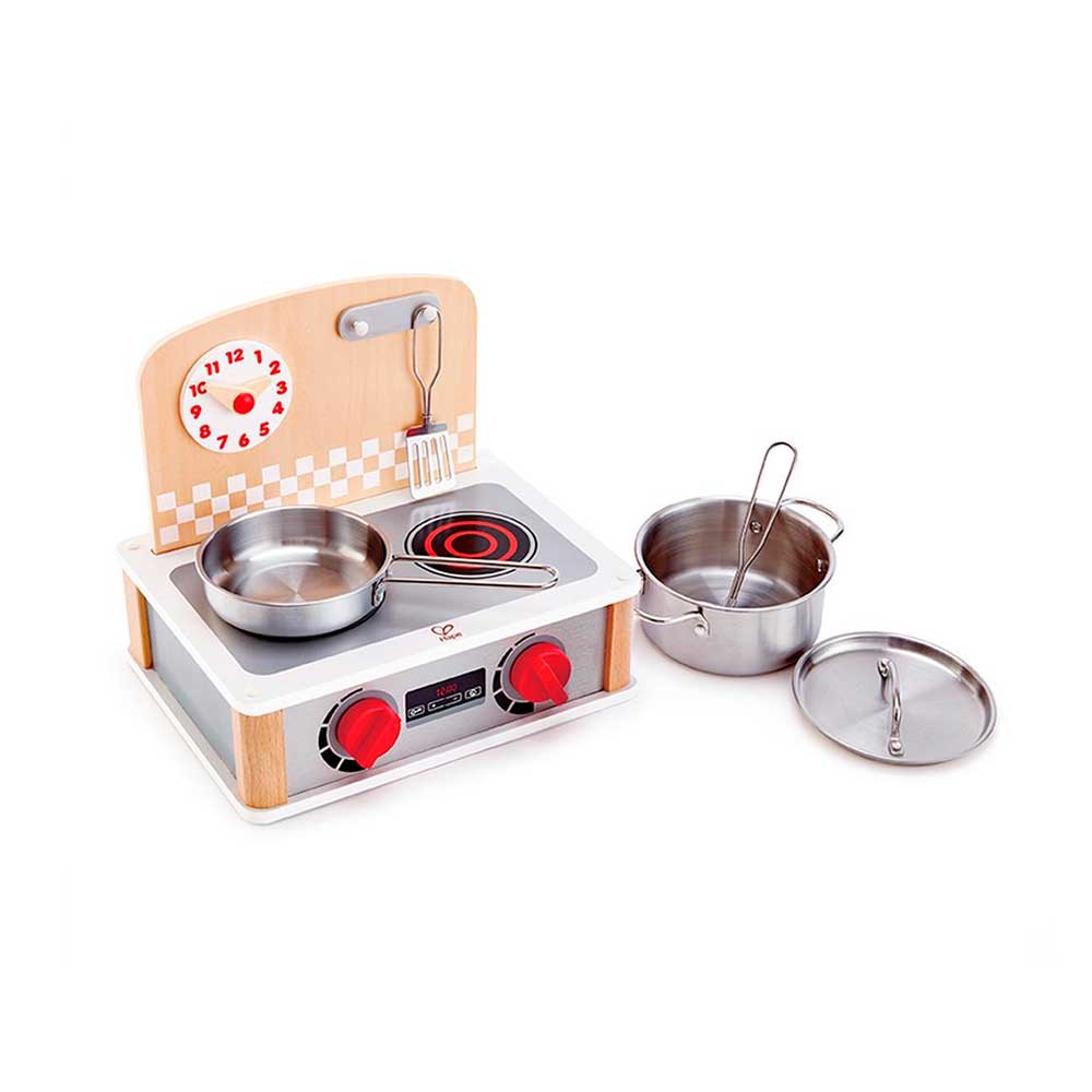 Готовьте вкусную еду вместе с ребенком в ролевой игре с помощью этого реалистичного набора для кухни и гриля 2в1, который включает металлические Аксессуары, щелчки, поворотные ручки и регулируемые часы.