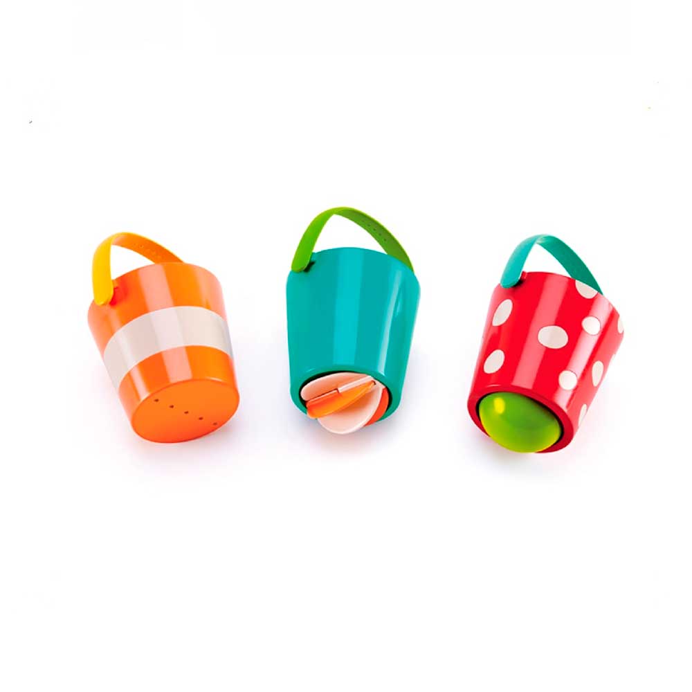 Три красочных ведра с дренажной системой для веселого взаимодействия. Идеально подходит для игр с водой!