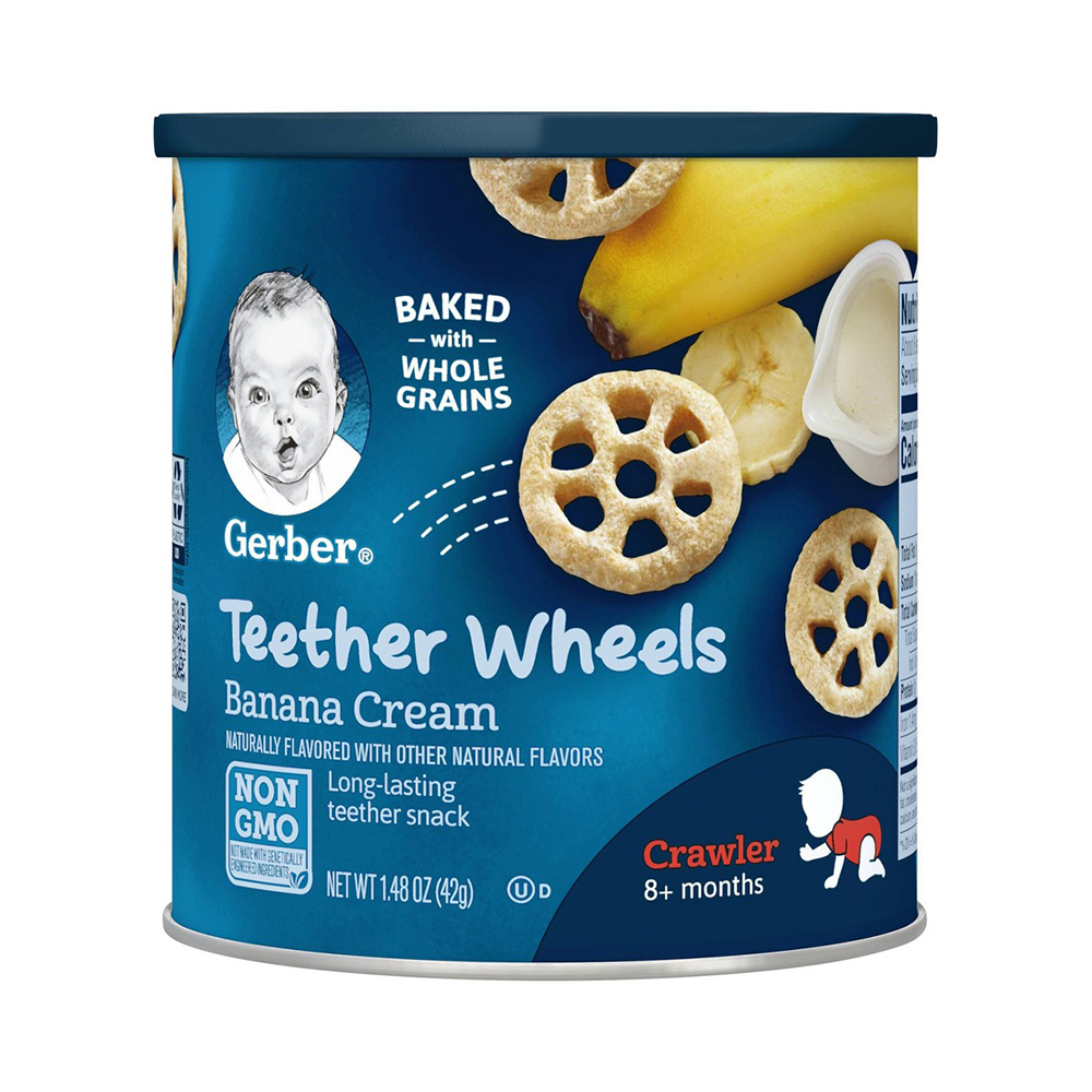 Gerber Teether Wheels — это воздушные зерновые закуски, которые содержат 2 грамма цельного зерна на порцию и являются хорошим источником витамина Е, цинка и железа для поддержки здорового роста и развития вашего старшего ребенка. Колеса для прорезывания зубов Gerber — это как раз тот размер, который подходит вашему старшему ребенку, чтобы легко удерживать только одну деталь, чтобы развить навыки приема пищи.