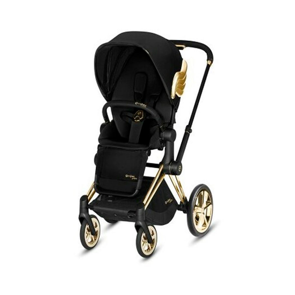 Прогулочная коляска Cybex Priam JS Wings Black из новой лимитированной коллекции Platinum от известного дизайнера Джереми Скотта выделит вас из толпы и подчеркнет особый статус. Шасси Cybex Priam выполнено в элегантном золотом цвете с колесами-вездеходами. Рама может использоваться как основа системы для путешествий 3 в 1 вместе с люлькой и автокреслом. Коляска достаточно устойчива, а небольшая ширина колесной базы позволяет проходить в любые дверные проемы и заезжать в лифт. Шасси компактно складывается, имеет двухколесный режим для преодоления препятствий, при этом прогулочный блок может оставаться разложенным. Коляска имеет специально разработанное сидение, которое совмещает в себе множество функций, облегчая заботу по уходу за малышом. Наклон спинки регулируется до полностью горизонтального, поэтому в любой момент прогулочная коляска может быть превращена в передвижную кроватку. Большой капюшон надежно защищает маленького пассажира от ветра, дождя и солнечных лучей. Удобное сидение крепится на каркас шасси Priam, что позволяет его сворачивать вместе с прогулочным блоком, а также удобно хранить или транспортировать. Пятиточечные ремни безопасности с мягкими плечевыми накладками и широким паховым ремнем не травмируют малыша и не доставляют ему неудобства. В комплекте есть комфортный матрасик с прорезями для ремней, изготовленный из дышащего мягкого материала.