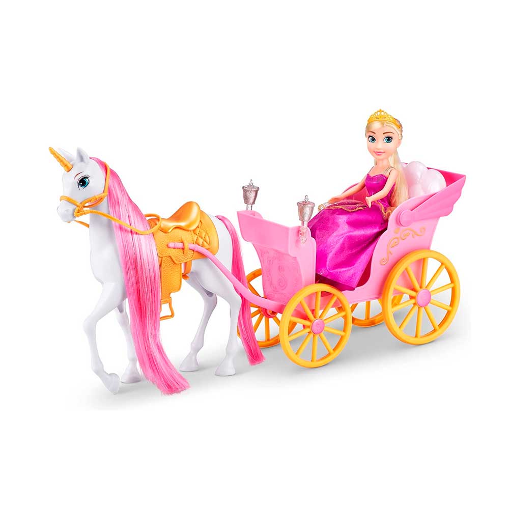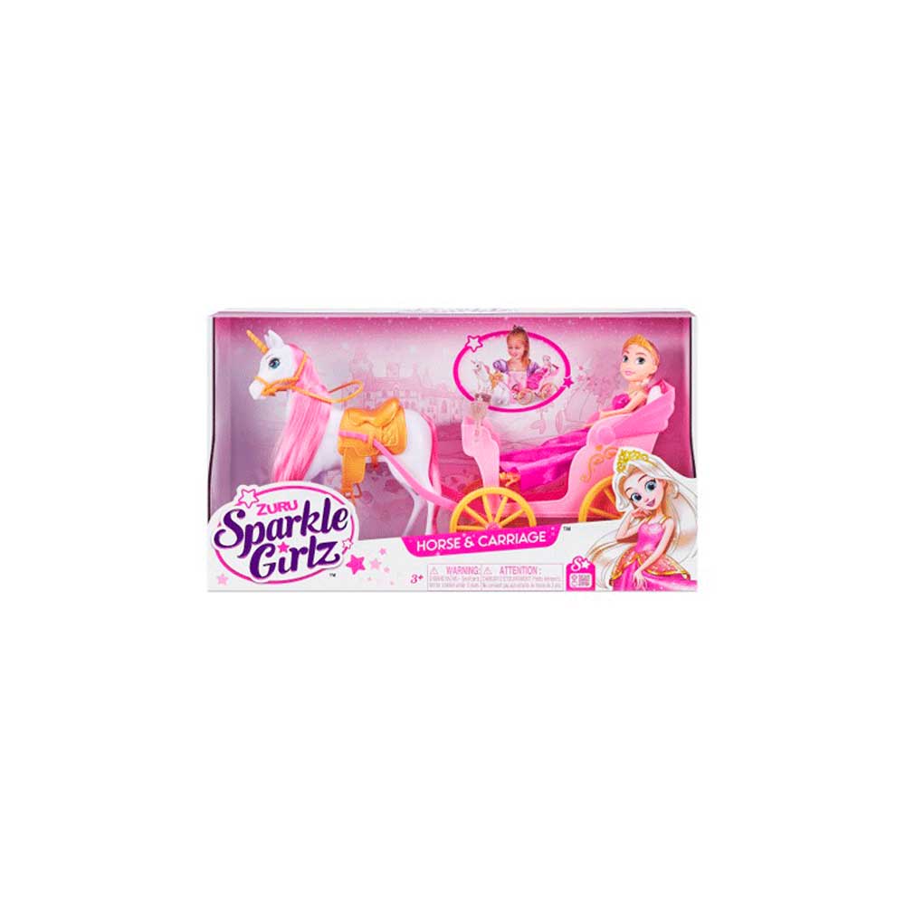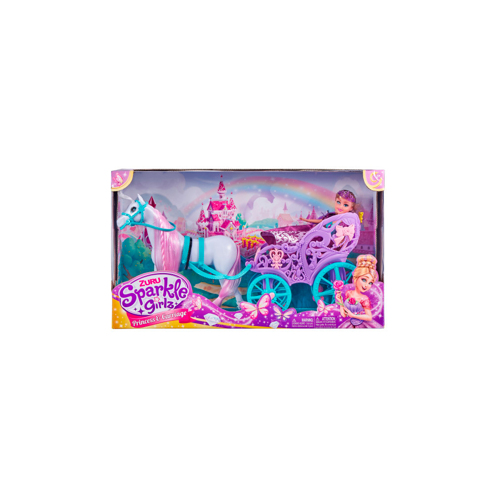 ZURU Sparkle Girlz Princess with Horse & Carriage позволяет вам отправиться в волшебный мир Sparkle Girlz! Посадите принцессу в карету и пусть ее королевский конь впереди. Эта кукла-принцесса поставляется с красивым нарядом принцессы, чтобы она могла сидеть прямо и сиять, отправляясь в путешествие. Ее королевская лошадь украшена жемчугом и имеет длинные блестящие волосы, с которыми можно играть