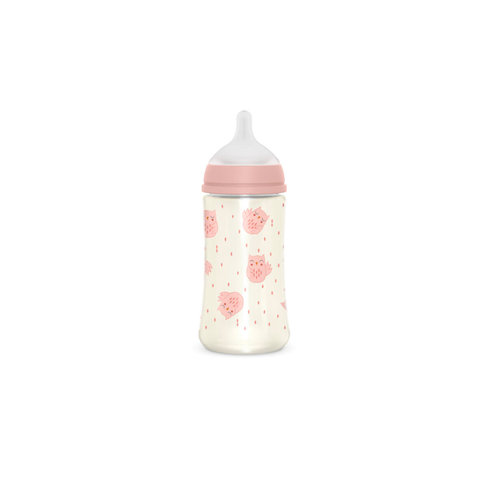Пластиковая бутылочка для кормления Suavinex FEATHER розовая 270мл