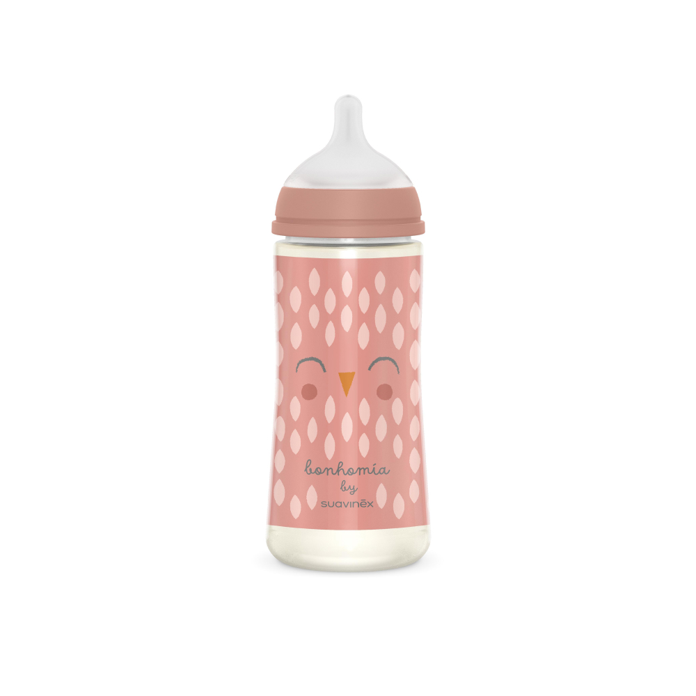 Пластиковая бутылочка для кормления Suavinex FEATHER розовая 360мл
