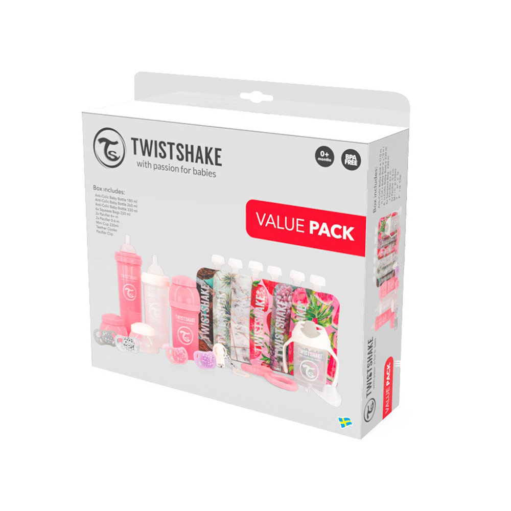 Этот набор содержит: бутылочка Anti-Colic 180 мл, 260 мл, 330 мл, пакеты для питания 6 шт (220 мл), пустышки 6м+ — 2шт, пустышки 0-6 м — 2 шт, мини-чашка (230 мл), прорезыватель и зажим для пустышки.