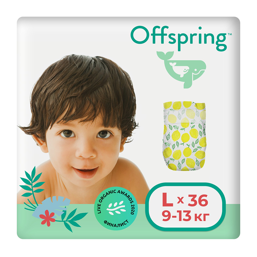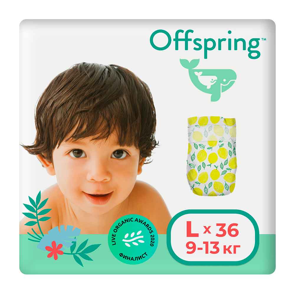 Подгузники Offspring Лимоны размер L 9-13 кг 36 шт