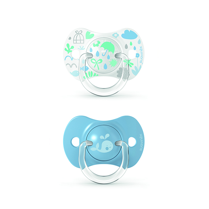 Пустышка Suavinex Memories силиконовая голубая 18м+ 2 шт