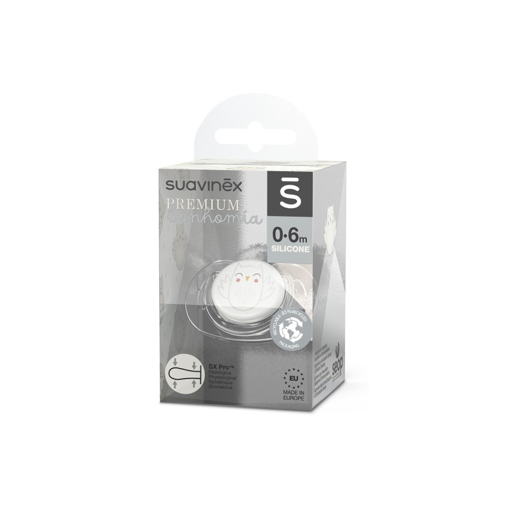 Пустышка Suavinex OWL силиконовая бежевая 0-6мес