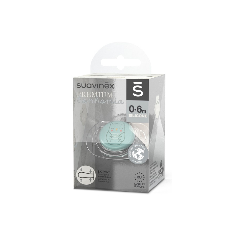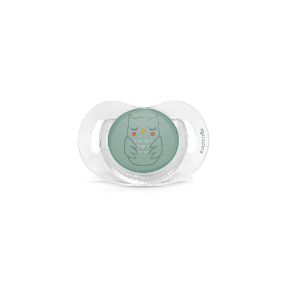 Пустышка Suavinex OWL силиконовая зеленая 0-6мес