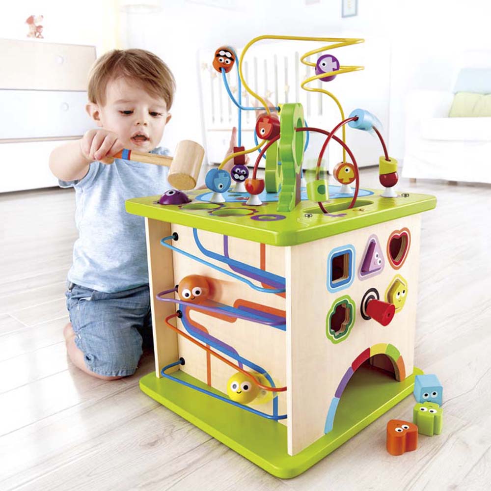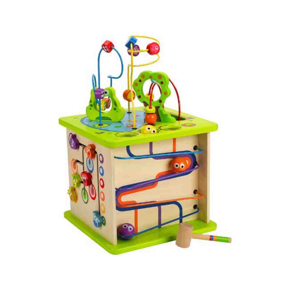 Лабиринты, формы, рычаги и множество летающих, плавающих и квакающих существ превращают этот красочный пятисторонний центр активности в центр активности. Изготовленный из прочного дерева и окрашенный краской на водной основе, он прослужит долгие годы.