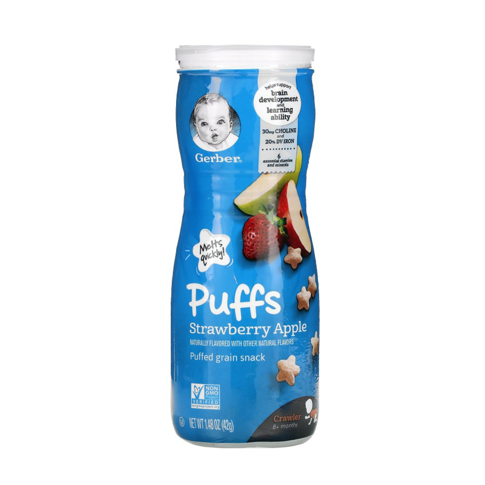 Снеки Gerber Puffs со вкусом яблоко клубника 8м+ 42 гр