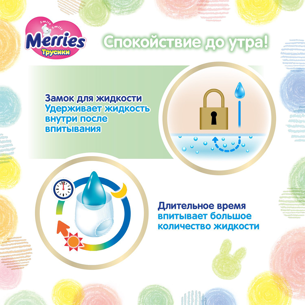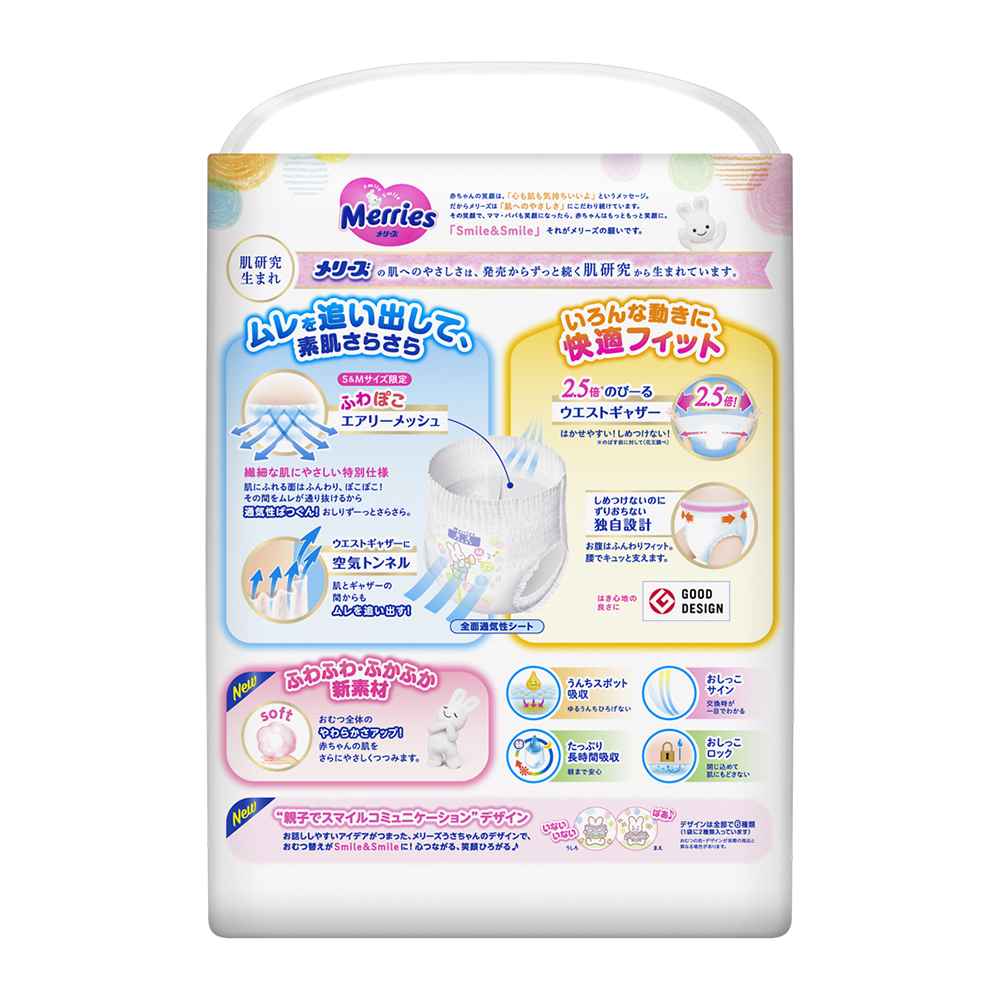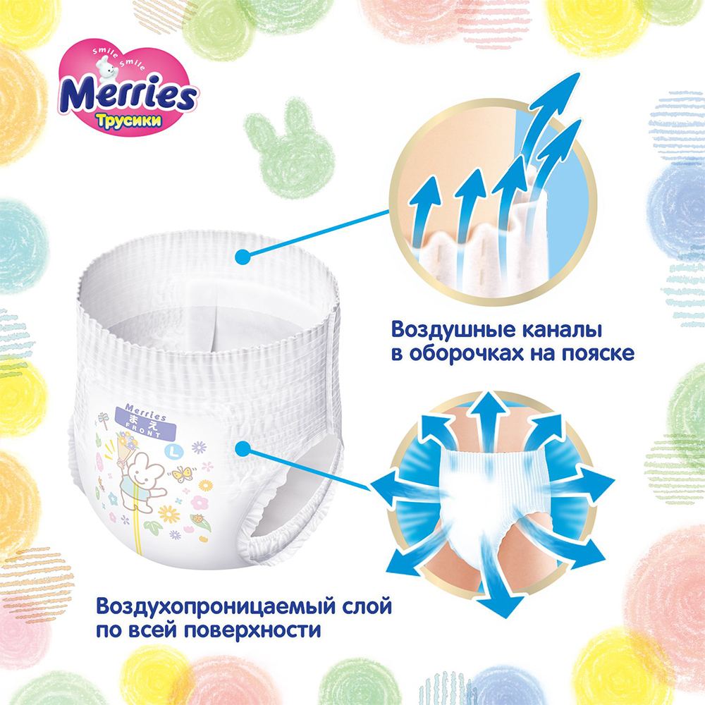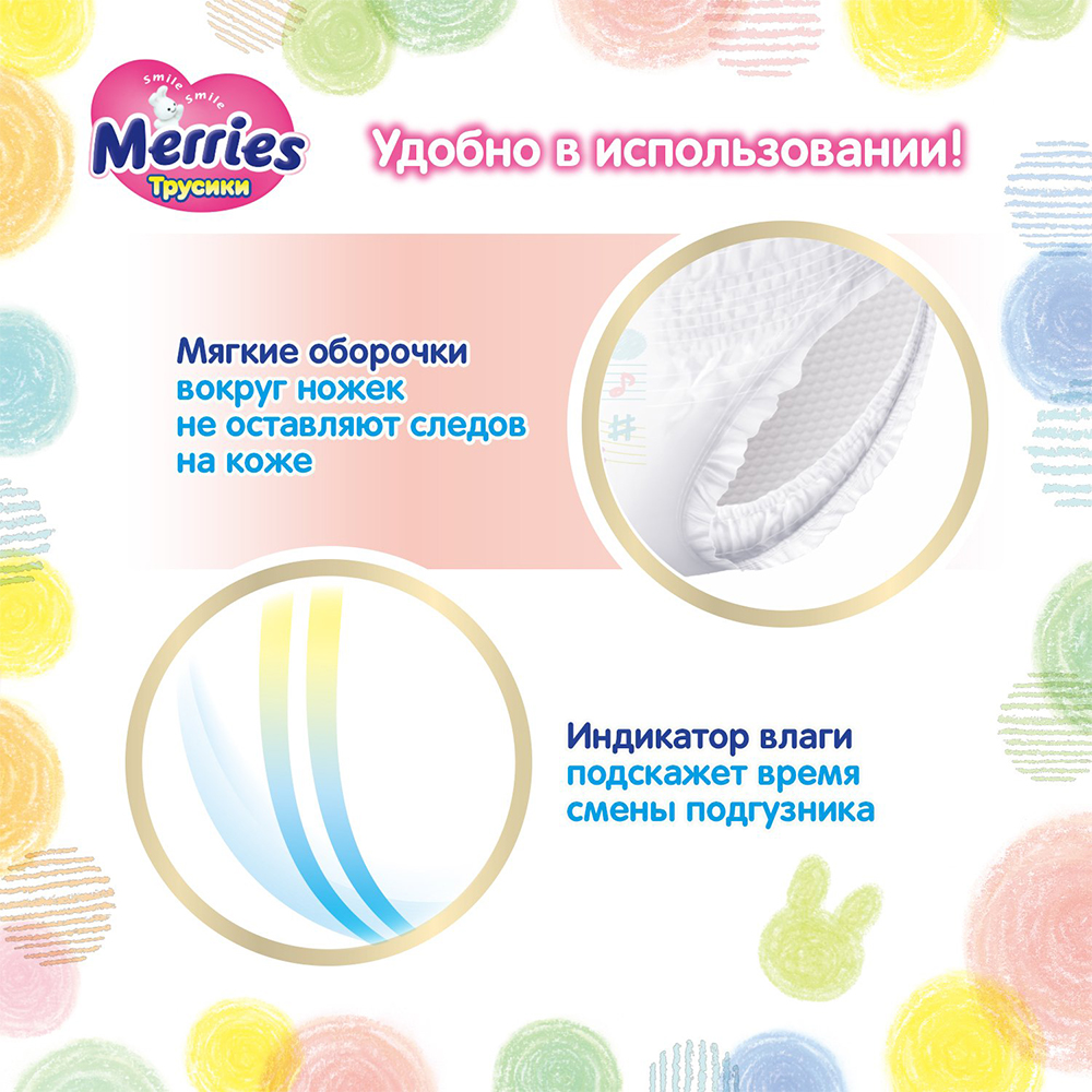 Трусики-подгузники Merries идеально подойдут малышу, который начинает активно двигаться. Даже если малыш очень активный, надежно защищают от протеканий и опрелостей, обеспечивая необходимый комфорт и свободу движений! Крой трусиков Merries разработан с учетом анатомических особенностей малыша. Хорошо сидят на талии и не сползают, но при этом не жмут и не оставляют следов на нежной коже малыша. Отлично облегают попку, сохраняют форму и заботятся о комфорте малыша, даже когда трусики уже наполнены. Комфортно садятся в паховой области и не создают дискомфорта между ножек. Нежно облегают ножки, не образуют щелей и защищая от протекания.