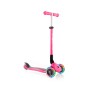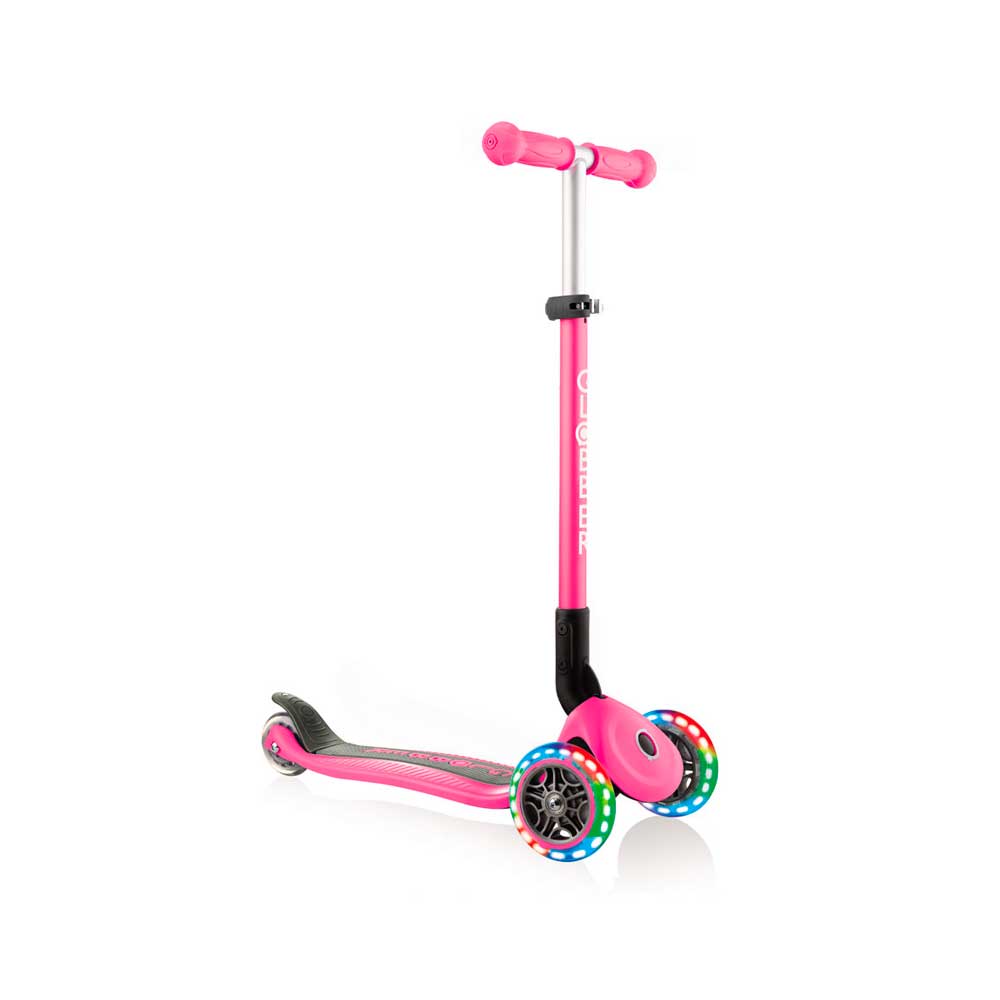 Primo Foldable Lights — новый трёхколёсный самокат от французской компании Globber. Primo Foldable Lights подходит для детей в возрасте от 3-х до 6-ти лет. С запатентованной системой складывания с помощью простого нажатия на кнопку. При сложении руль самоката опускается к деке и фиксируется для удобной перевозки/транспортировки. У новинки широкая удлиненная дека с нескользящим ребристым покрытием и усиленным широким тормозом, для безопасной и долговечной эксплуатации. Руль регулируется в 3-х положениях, а дека выдерживает до 50 кг. У деки самоката двухцветный дизайн и на выбор предлагается 5 ярких цветовых решений. Колёса самоката светятся при движении. Подшипник Abec 5. Высота руля: 67,5- 82,5. Материал: алюминий, пластик.