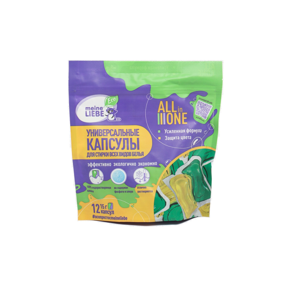 Универсальные экологичные капсулы для стирки цветного и белого белья Meine Liebe All in 1 12 кап