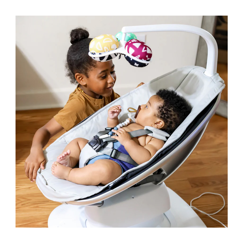 MamaRoo® Multi-Motion Baby Swing™ — это единственные качели, которые двигаются так же, как и вы. Вдохновленные вами, наши движения имитируют естественные ритмы и движения родителей, чтобы стать наиболее привычным местом для безопасного укладывания вашего ребенка, когда он не может быть на ваших руках. MamaRoo дает родителям возможность освободить руки, пока ваш малыш с комфортом наблюдает за окружающим миром и исследует его. 5 движений, вдохновленных родителями? 5 скоростей? Регулируемый наклон? Четыре встроенных звука Привязь трансформируется с 5-точечной на 3-точечную по мере необходимости. Игрушечный мобиль с интерактивными двусторонними игрушечными шариками, включая погремушку, зеркало и хрустящий шарик. Размеры 26,25″ х 23,5″ х 35,5″ Вес: 15 фунтов. Ограничения по возрасту и весу Детские качели MamaRoo® Multi-Motion Baby Swing™ предназначены для использования до тех пор, пока ваш малыш не достигнет максимального веса 25 фунтов (11,3 кг) или пока не попытается вылезти (примерно 9 месяцев), в зависимости от того, что наступит раньше. Всегда используйте удерживающую систему. Отрегулируйте, чтобы плотно прилегать. Ограничитель можно сконфигурировать с 3-точечным или 5-точечным ремнем безопасности. При использовании 3-точечных ремней необходимо перейти на 5-точечные ремни, когда ребенок сможет сидеть без посторонней помощи.