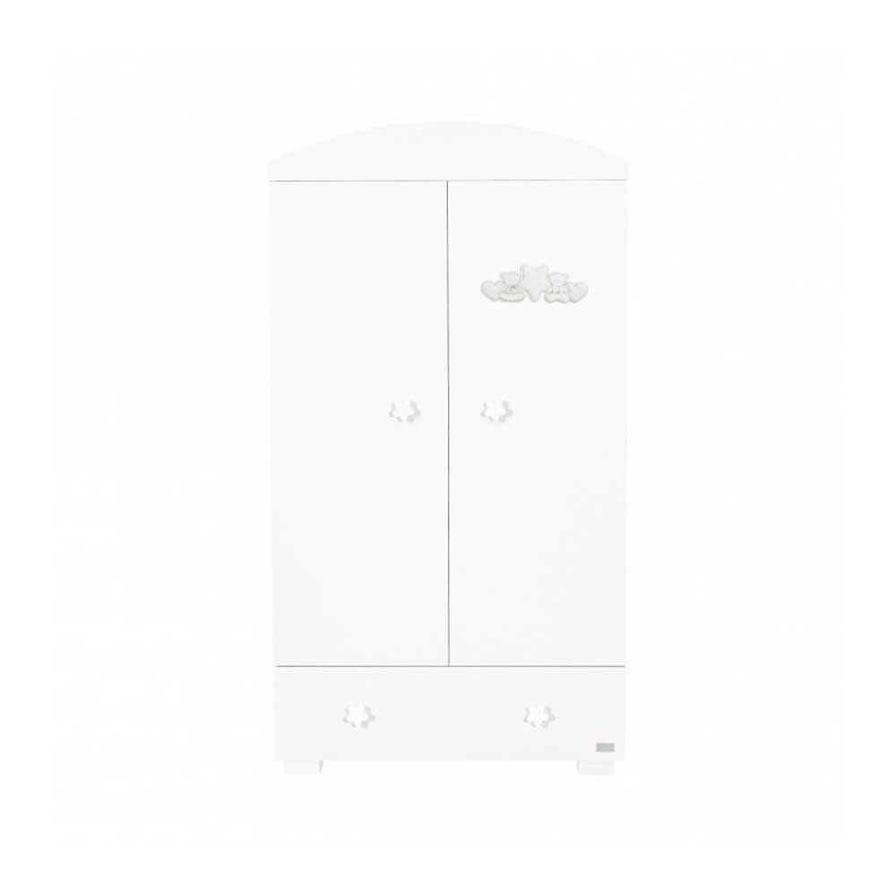 Шкаф двухстворчатый Picci Nanny — стильная и лаконичная новинка идеально впишется в интерьер детской комнаты. Модель выполнена в спокойном классическом стиле, имеет плавные линии. Шкаф украшен оригинальными ручкам в форме звездочек и милой аппликацией в виде мишек. Надежная конструкция дополнена устойчивыми массивными ножками, но благодаря верху арочной формы, создается эффект воздушности. Двухстворчатая модель состоит из горизонтальных полок и штанги для одежды на плечиках. Снизу расположен вместительный выдвижной ящик, в который поместятся крупные вещи. Характеристики Picci Nanny: двухстворчатая модель, оригинальный дизайн, эргономичной формы ручки в виде звездочек, модель выполнена из натуральных материалов и покрыта краской на водной основе, которая безопасна для детей, массивные и устойчивые ножки имеют резиновые наконечники, внизу расположен вместительный выдвижной ящик, благодаря ножкам, под шкафом можно производить влажную уборку, одну створку украшает милая аппликация в виде мишек, внутри шкафа находятся четыре вместительных полки и рельса для одежды на вешалках. Материалы: МДФ, ДСП, ручки – массив бука. Размеры Picci Nanny: 55,5x100x184,5 см