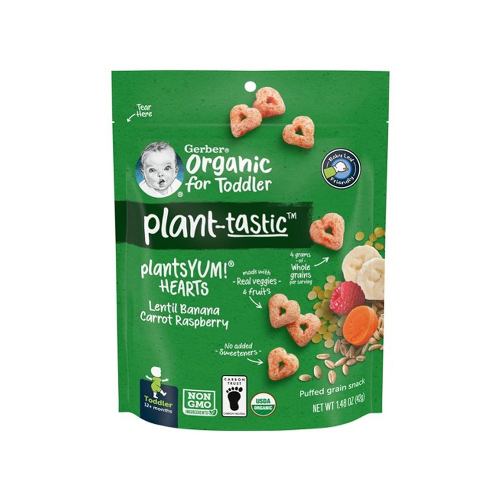 Gerber, PlantTastic Foods пуфы чечевица, банан, морковь, малина от 12 месяцев, 42 г