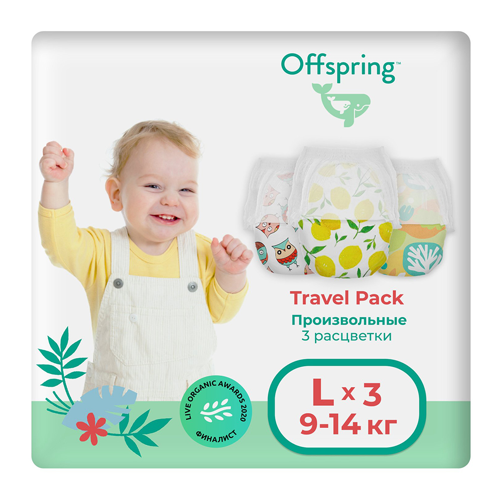 Offspring подгузники, Travel pack, L 9-13 кг. 3 шт. 3 расцветки